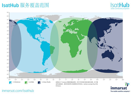 iSavi终端通过Inmarsat I-4卫星和地面网络进行通讯。I-4卫星网络全球覆盖(除南北极),平均可用度可达99.9%。